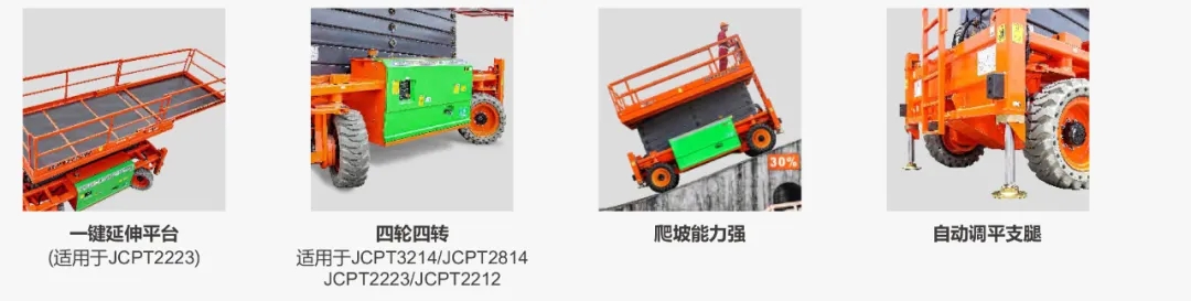 大型越野剪叉式高空作業(yè)平臺(tái)系列分兩類,最大工作高度覆蓋12-32m,最大荷載750kg,具備高度高、載重大、平臺(tái)大、動(dòng)力強(qiáng)等優(yōu)勢(shì),可勝任更加惡劣的工況,滿足室內(nèi)外各種作業(yè)需求。